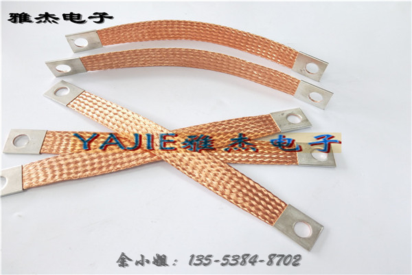 导线材料:铜编织线、铜编织带、镀锡铜编织线、镀锡铜编织带、铜绞线。铜编织带是用无氧铜丝编织,线经0.10mm,0.12mm,0.15mm单丝,根据客户要求,柔软度,通电强度等特制而成。