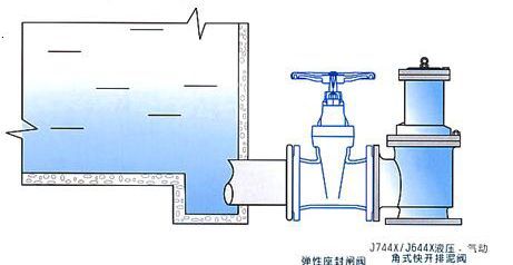J744X/J644X角式排泥阀必须配有机房,气(水)泵,换向阀可远距离控制排泥阀开关,一般水池可装2-10台一排安装,同时启动开关,驱动液可用清水或气,本产品可节省人力物力,有很大的经济效益是理想产品。
