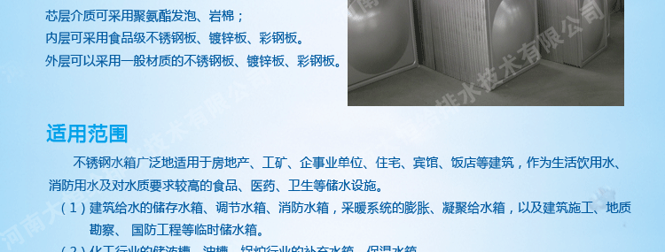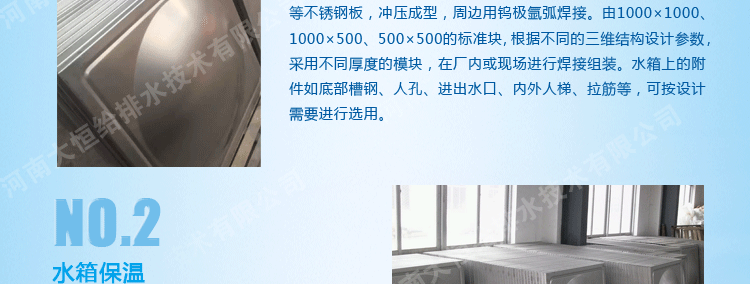 河南大恒给排水技术有限公司是生产加工水箱的专业厂家。自成立以来,以产品质量为立厂立业之本,凭一流的产品质量及周到的服务在广大客户群中树立了良好的企业形象。