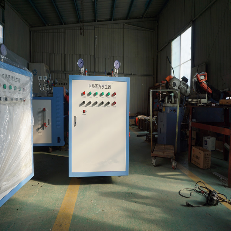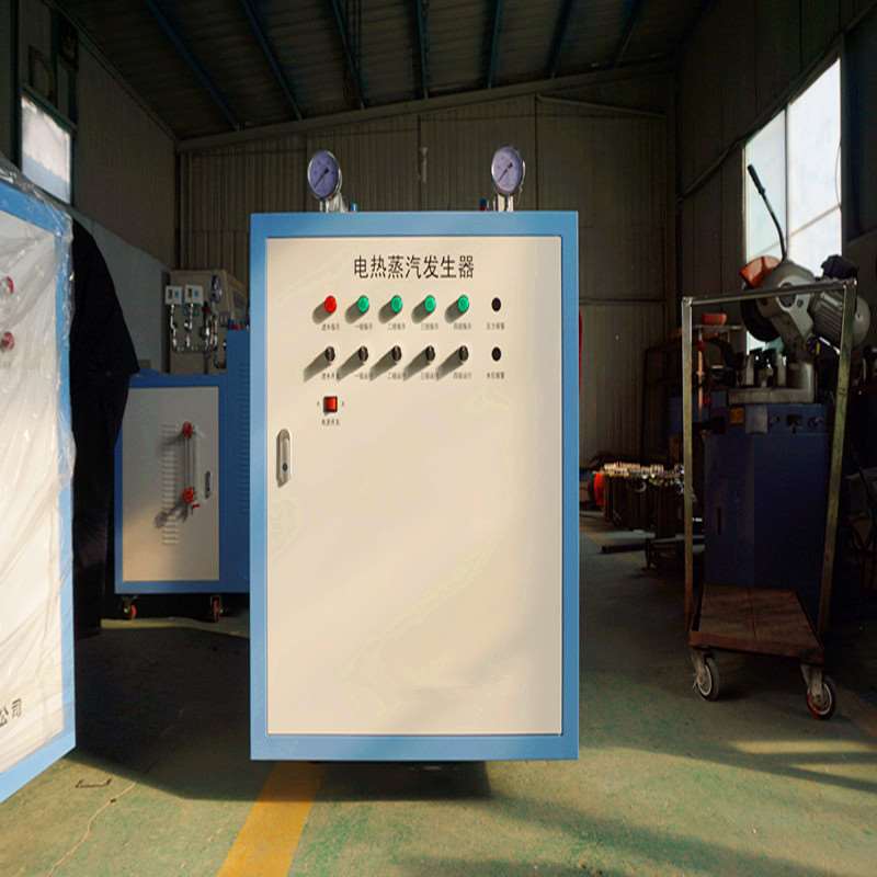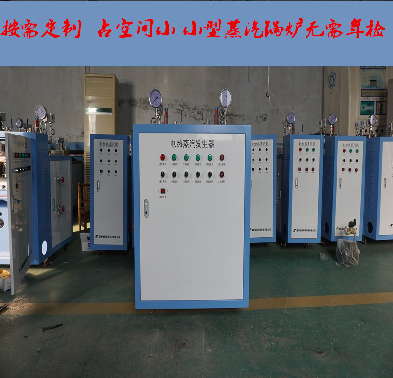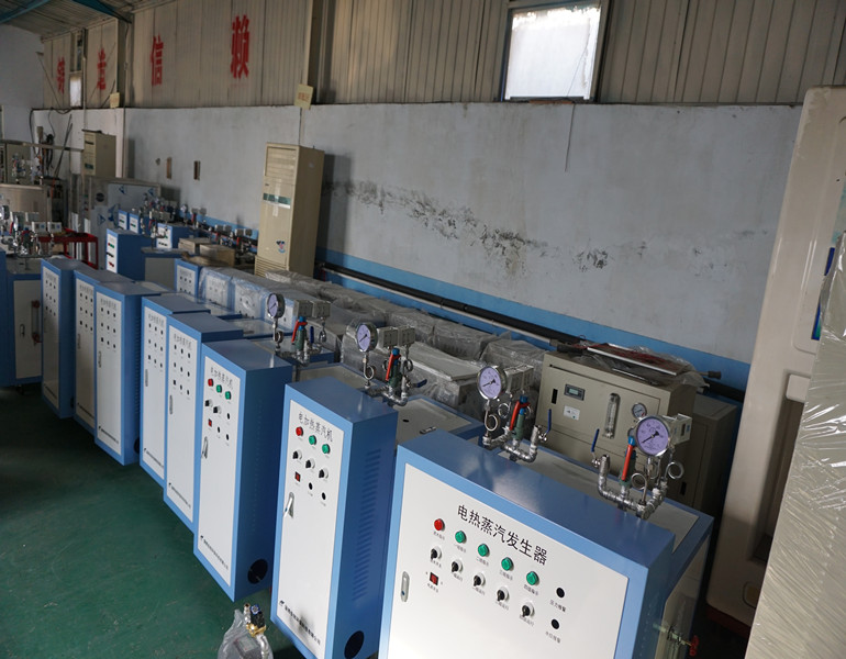 一、工作原理:设备接通电源后开启电源旋钮,水泵将水箱中的水泵入蒸汽发生器的加热筒内,水位随水泵供水而上升,当高于最低液位时,电加热管的电源自动接通,开始加热;此时水泵继续供水到高水位时水泵自动停止供水。同时电加热管不断加热下,加热筒内水温不断上升,直至产生所要求工作压力的蒸汽,此时打开排汽阀即可供应蒸汽。供汽过程中蒸汽压力有可能会继续上升,当压力升至0.4Mpa时,压力控制器动作,自动断开加热管电源停止加热。由于加热停止,筒内蒸汽压力逐渐下降,当蒸汽压力下降至约0.3Mpa时,电加热管电源再度被接通,蒸汽压力再度升高,如此可连续获得蒸汽源。另外,设备有良好的自保护措施。当加热筒内液位下降至最低液位而无水可加时,电加热管自动停止加热,以避免加热管因空烧而损坏;如蒸汽压力超过设定工作压力0.4Mpa后压力仍继续上升,安全阀自动开启,确保设备的安全。