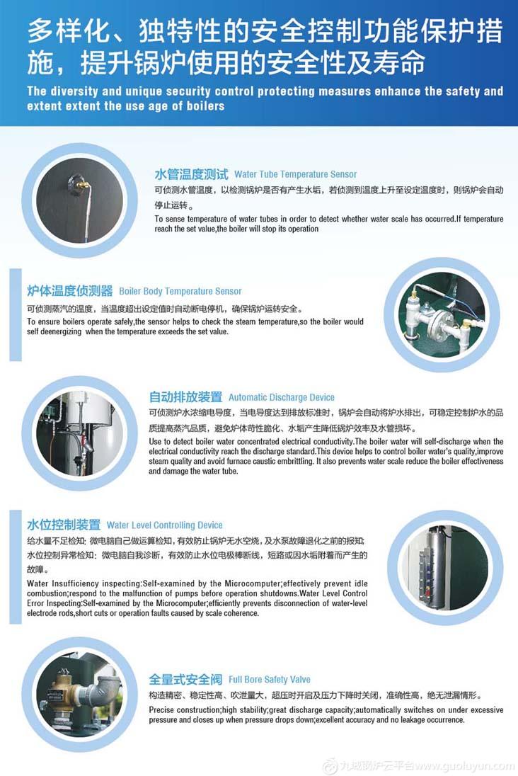 可侦测蒸汽的温度,当温度超出设定值时自动断电停机,确保锅炉运转安全。