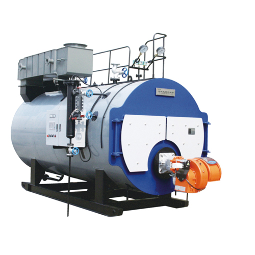 WNS型燃气锅炉为卧式快装内燃三回程火管锅炉。采用偏置炉胆湿背式结构,高温烟气依次冲刷第二及第三回程烟管,然后由后烟室经烟囱排入大气。锅炉装有活动的前后烟箱盖,使锅炉检修方便。