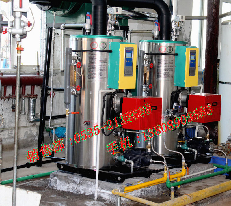 小型免检监蒸汽锅炉简介 : 全自动燃油(气)蒸汽锅炉*、立式结构内置无缝烟管,水容量小于锅炉监检范围,全自动微电脑锅炉专业控制器控制。*、体积小、重量轻,节省场地空间,只需要接通水、气、电即可投入运行。*、一键式启动,全自动运行,自动补水,自动燃烧,到压力自动停机,低于压力自动燃烧,蒸汽压力在额定工作压力范围内可自由调节,无需专人值守。*、锅炉采用Q235专用锅炉钢,强度高,抗腐蚀性好。*、锅炉水容量小于国家监检范围,在国家免于强制性监检范围内,并适用于JB/T7985《小型和常压热水锅炉技术条件》以及JB/T10393《电加热锅炉技术条件》,可免除政府强制性监检。*、内置汽水分离装置,完美实现水汽分离,蒸汽干度特别适合于石锅鱼及餐饮行业蒸煮、加热、煮海参、烘干水产、消毒灭菌等配用。*、内置极低水位保护装置和超压保护装置,随时检测水位变化,避免炉体干烧所引发的安全性事故;*、配备优质安全附件缺水保护、超压保护、过热保护、熄火保护、漏电保护、安全阀超压保护等措施,确保产品绝对安全,蒸汽发生器受进口压力开关控制,到上限压力自动停机,低于下限压力自动启动,往复循环自动工作,压力1-7kg任意可调(温度100-170度任意可调全自动运行)。*、适用轻柴油、天然气、液化气、甲醇等多种能源,清洁环保。*、升压快.出气足点火3分钟出气,7分钟达到饱和蒸汽压力0.7Mpa温度(170)度,并可多台联网运行,点火启动均为全自动模式。