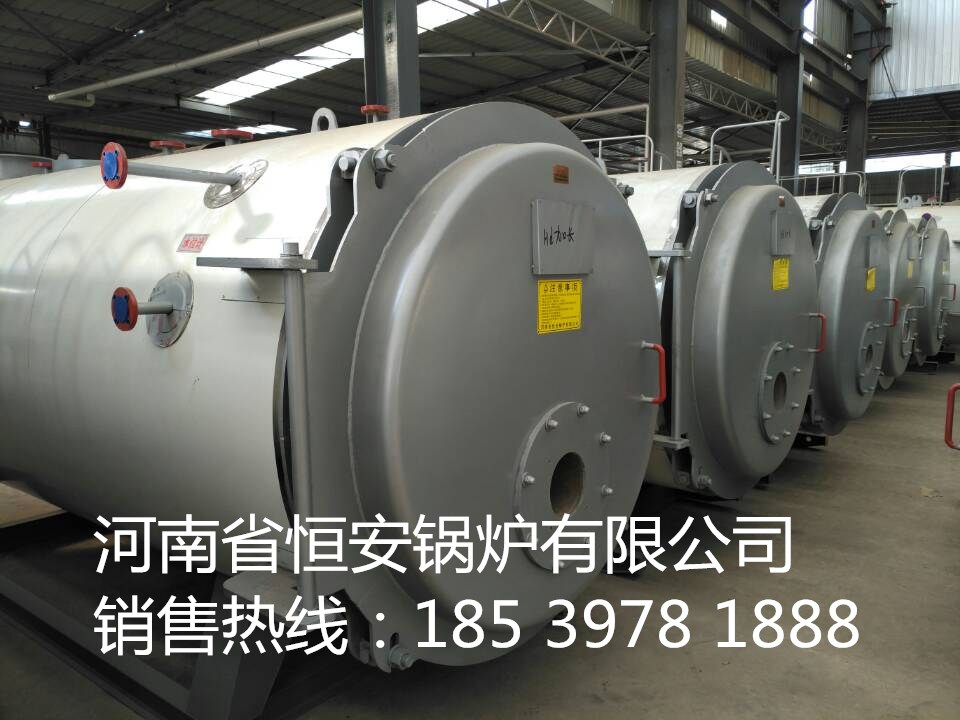 WNS型燃气【燃油】蒸汽(热水)锅炉: 为卧式快装内燃三回程火管锅炉.采用偏置炉胆湿背式结构,高温烟气依次冲刷第二及第三回程烟管,然后由后烟室经烟囱排入大气.锅炉装有活动的前后烟箱盖,使锅炉检修方便.锅炉配置技术性能良好燃烧器,采用了燃烧自动比例调节,给水自动调节,程序启停,全自动运行等先进技术,并具有高低水位报警和极低水位、超高汽压、熄火等自动保护功能.该型锅炉具有结构紧凑、安全可靠、操作简便、安装迅速、污染少、噪音低、效率高等特点