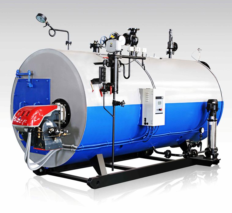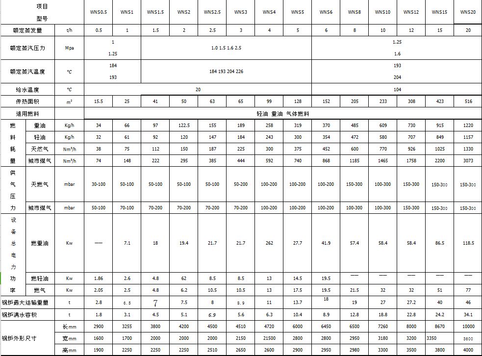 WNS系列全自动燃油(气)蒸汽锅炉(实用新型专利),采用卧式三回程湿背结构,改善锅炉运行环境,提高锅炉效率和使用寿命;全部烟气通道置于水中,尾部配有余热水箱及完善的保温外包设计,烟箱密封采用迷宫式结构,避免了烟箱漏烟现象。锅炉热效率高达85%以上,采用有良好膨胀性能的波纹炉胆与锥形炉胆的组合炉胆,炉胆尺寸与火焰相吻合,烟气流通面积以次减小,使烟气等速流动,保证高温烟气在炉内的热交换时间,达到最佳传热效果;采用与锅炉完全匹配的高性能燃烧机,进行全面自动调节,使燃烧充分,节省燃料,降低污染;采用高保温性能的超细玻璃棉,散热损失更小;采用智能化节能控制系统,对锅炉及供汽(供水)系统进行控制,结合不同负荷调节燃料供给,更加节能。安装方式为整体快装锅炉,振动小,对地基无特殊要求,不需地脚螺栓固定,安装简单易行。 采用活动炉头结构,可匹配各种燃烧器,更换炉头,维修炉体方便快捷。 前、后烟箱采用活动可拆结构,可方便地对锅炉内部进行检查、维护、保养,简单、便捷,产品设计新颖、结构合理,工艺性能良好,使本产品具有不同凡响的优异品质,是最新开发的新款产品。