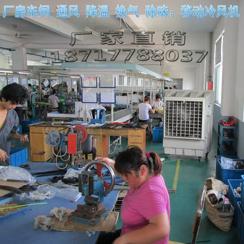 四、环保冷风机的适用范围:※ 纺织、机械、陶瓷、冶金、玻璃、五金、皮革等制造业;※ 电镀、电子、制鞋、印染、塑料、制衣、印刷、包装、食品等加工业;※ 厨房、菜市场、地下停车场、车站等公共场所;※ 候诊室、学校、网吧、机房、候车室、超级商场、面积大于20平方的店铺以及家里客厅等;※ 温室、花卉、家禽、畜牧、大棚等种养殖场