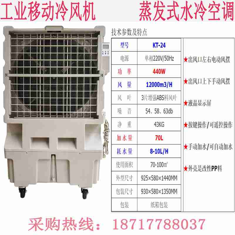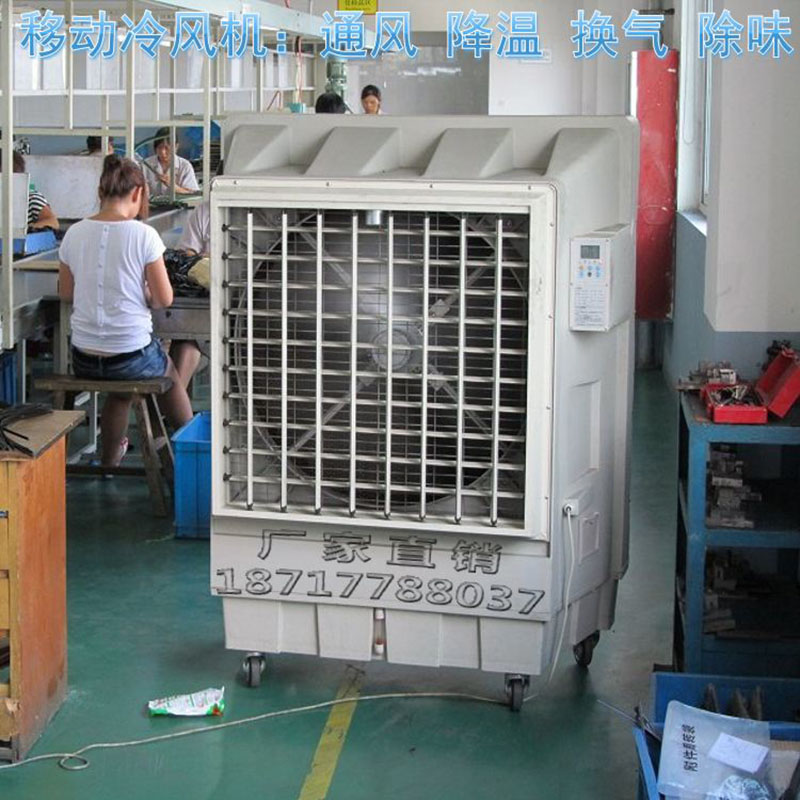 一、环保冷风机的产品特点:1、环保:无氟利昂,集除味、换气、通风、降温、调节温度、湿度于一体。2、节能:每小时耗电量仅0.4-1 度,运行成本低,耗电量只有传统压缩机空调的 1/8 。3、覆盖面积大:每台机器冷风覆盖面积达60-150m2,每小时送风量达8000-18000m3,送风量距离远。4、降温效果明显:一般可达5℃-15℃的降温效果,且降温迅速。5、投资少、效果大(可以节省中央空调80%的投资款)。6、使用场所可以不关闭门窗,可确保空气流通,增加空气中的含氧量。7、在干燥地区能适当调节空气湿度,提高舒适性。在纺织业、针织中也能减少断纱 ,提高产品合格率。