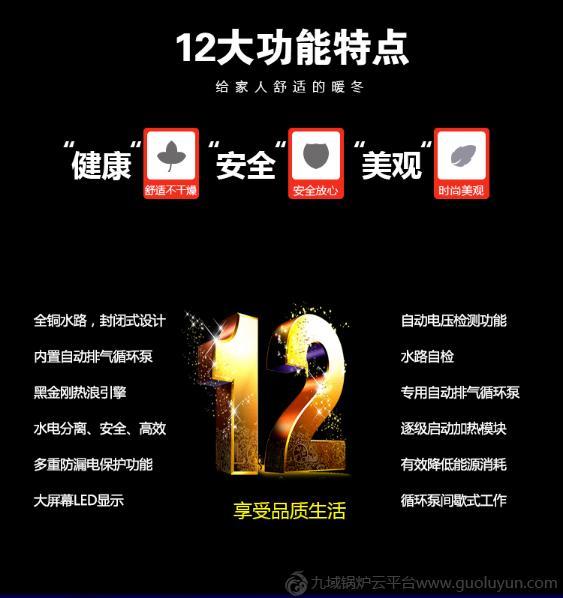 是一个面对家庭、旅店、学校教室、集体宿舍、等冬季采暖、洗手、洗浴的家电设备,主要应用于没有集中供暖的城市区、县城、乡镇用户。电采暖壁挂炉的功率从2000W到12000W,分7个类型 .采暖面积20-100平米,落地式功率12kw-100kw. 用户可根据取暖面积需要选择.。