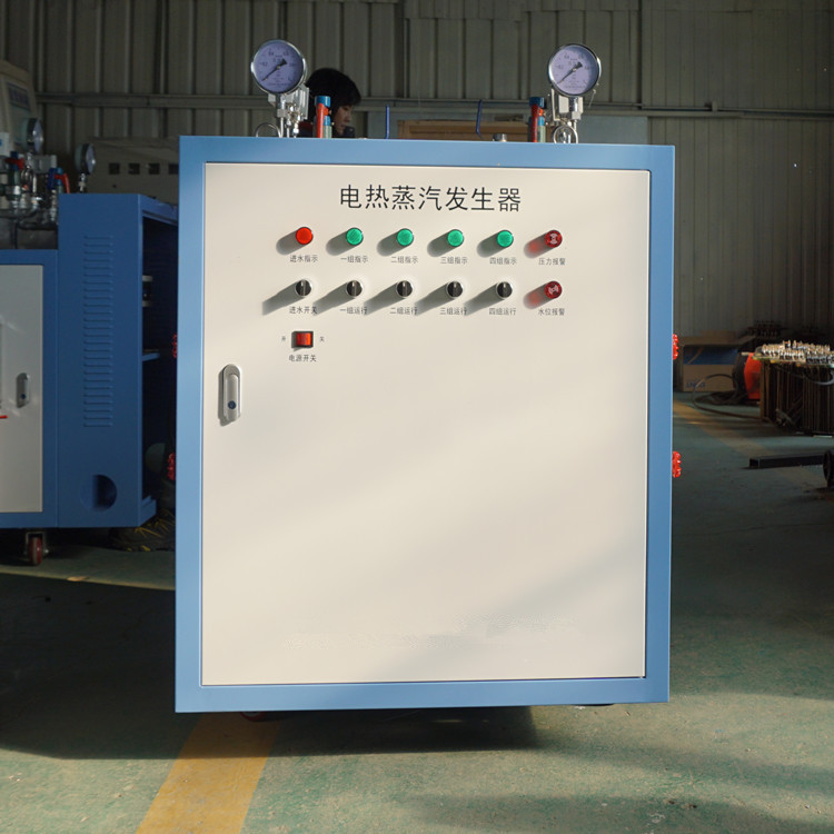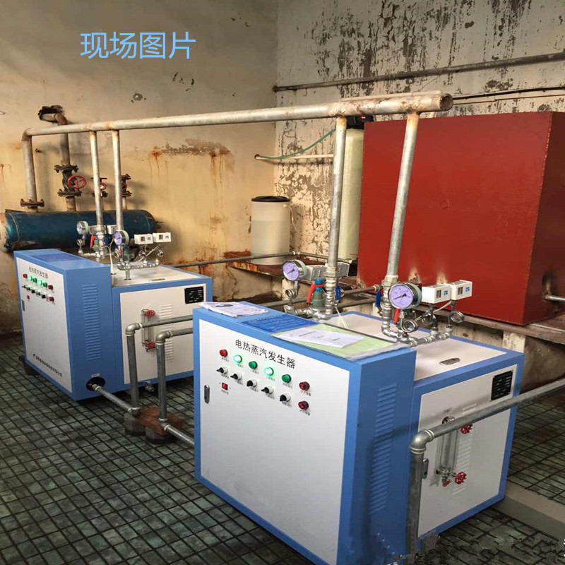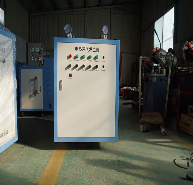 一、工作原理:设备接通电源后开启电源旋钮,水泵将水箱中的水泵入蒸汽发生器的加热筒内,水位随水泵供水而上升,当高于最低液位时,电加热管的电源自动接通,开始加热;此时水泵继续供水到高水位时水泵自动停止供水。同时电加热管不断加热下,加热筒内水温不断上升,直至产生所要求工作压力的蒸汽,此时打开排汽阀即可供应蒸汽。供汽过程中蒸汽压力有可能会继续上升,当压力升至0.4Mpa时,压力控制器动作,自动断开加热管电源停止加热。由于加热停止,筒内蒸汽压力逐渐下降,当蒸汽压力下降至约0.3Mpa时,电加热管电源再度被接通,蒸汽压力再度升高,如此可连续获得蒸汽源。另外,设备有良好的自保护措施。当加热筒内液位下降至最低液位而无水可加时,电加热管自动停止加热,以避免加热管因空烧而损坏;如蒸汽压力超过设定工作压力0.4Mpa后压力仍继续上升,安全阀自动开启,确保设备的安全。
