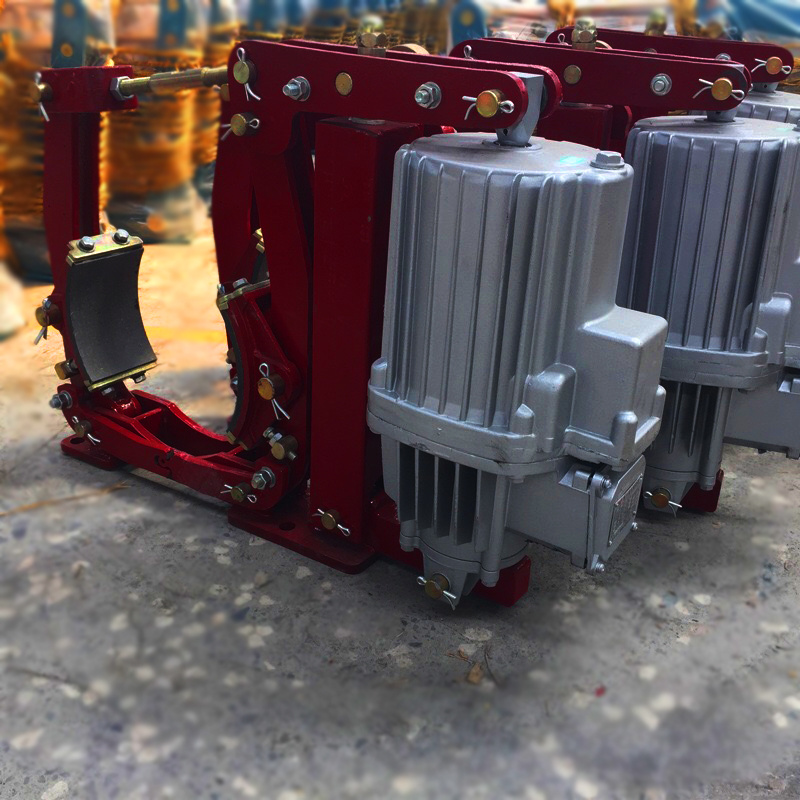 YWZ9电力液压制动器详细说明:YWZ9系列电力液压块式制动器 产品简介:电力液压块式制动器广泛用于起重、冶金、矿山、港口、码头、建筑机械等机械驱动装置的减速或停车制动。符合标准:YWZ9系列电力液压块式制动器安装尺寸符合GB6333-86标准,技术要求符合JB6406-2006标准。主要特点:主要摆动铰点均设有自润滑轴承,传动效率高,在使用中无须润滑;主要性能安全可靠,制动平稳,动作频率高。具有连锁式等退距装置,在使用过程中始终保持两侧瓦块退距均等,避免因退距不均使一侧制动衬垫浮贴制动轮现象;制动器弹簧布置在弹簧管内,并在一侧设有制动力矩标尺,调整方便直观;无石棉制动衬垫与制动瓦采用卡装插入式,安全可靠,更换方便、快捷。使用条件:环境温度-20℃~+50℃;电源:380V,50HZ;相对湿度:应不大于90%;周围工作环境中不得有易燃、易爆及腐蚀性气体;使用地点的海拔高度符合GB755-2000;户外雨雪侵蚀或有腐蚀性气体和介质应采用防腐性产品。