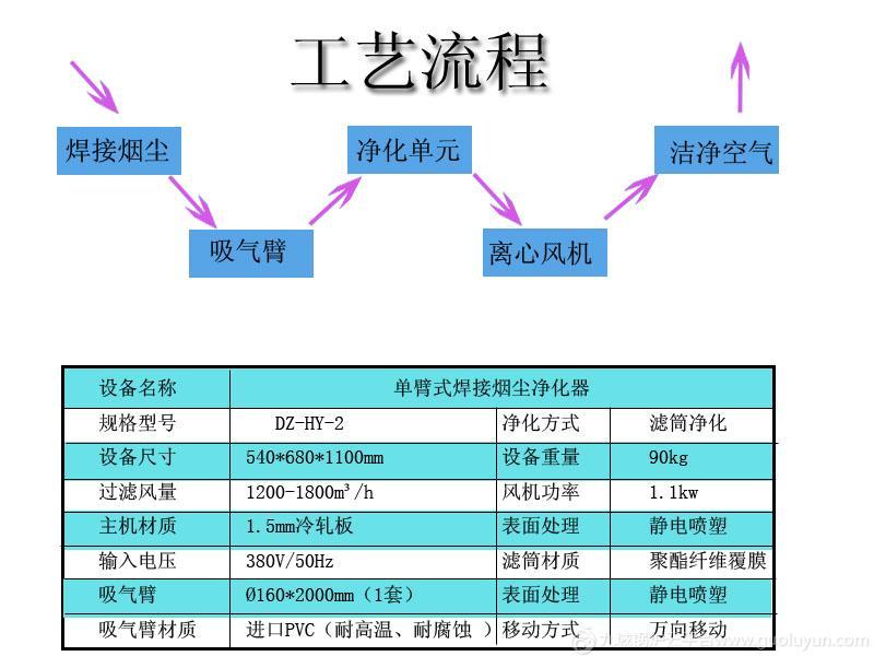 欢迎各界厂商来电来函垂询!联系电话:13061212166 0532-58735920 青岛森一重泰环保设备有限公司是一家集科研、设计、生产、维护、销售 为一体的综合性高薪技术企业,主要从事各类烟尘、粉尘车间净化产品的设计、研发、生产制造,广泛应用于焊接、切割、打磨、喷涂、铸造、化工、木材加工、烟草、陶瓷、造纸行业。凭借在环保领域的专业水平和成熟技术,始终站在中国环保产业的前沿。 目前公司主要品种有:焊接烟尘净化器,打磨除尘工作台,双臂焊接烟尘净化器,单臂焊接烟尘净化器,电焊烟尘净化器,小型烟雾净化器,滤筒除尘器,油烟净化器,粉尘净化器,万向吸气臂,电焊烟雾净化器,激光烟雾净化过滤系统,打磨除尘专用设备,中央式焊接烟尘净化系统,脉冲除尘器,移动式焊接烟尘净化器,集成中央式焊接烟尘净化系统,集中式高效净化器等 焊接烟尘净化器又称焊烟净化器,也称电焊烟雾净化器。针对机械加工、汽车总装厂、维修厂及其相关行业焊接作业时产生的烟尘、粉尘、油雾需处理而设计的轻便高效的净化器。广泛应用于焊接、抛光、切割、打磨等工序中产生的烟尘和粉尘的净化以及对稀有金属、贵重金属的回收等,可净化大量悬浮在空气中对人体有害的细小金属颗粒。设备参数:壳体:540*700*1150重量:90公斤功率1.1KW风量 1500m3/h电压 380V/50HZ6、净化效率:99.99%7、核心部件滤筒:材质聚酯纤维覆膜,寿命一万小时,过滤面积10平方米。直径350毫米,长高660毫米特殊规格可定制主要特点:1、 焊接烟尘净化器主机:采用无缝模具生产确保主机密封性和良好的噪音控制2、 焊接烟尘净化器滤筒:采用阻燃防静电滤筒,具有尘埃粘连度低,清灰方便。拥有良好的通风效率,提高过滤面积3、 焊接烟尘净化器吸气臂:万向可悬停吸气臂,360无死角保证在各种工况下都能使烟尘顺畅进入集尘罩,提高净化效果,保证净化效果。4、 焊接烟尘净化器 移动性:设备脚底采用万向轮并配备卡锁功能,可使设备任意移动确保电焊烟尘的点对点净化。