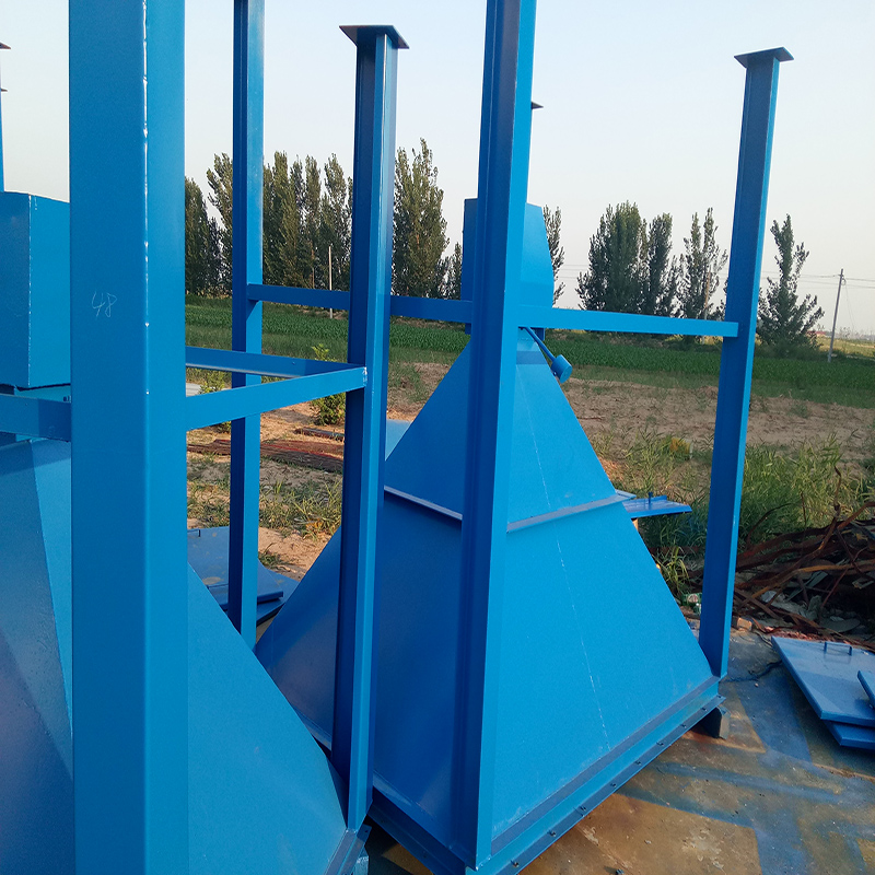 该小型单机除尘器工作原理:灰尘由进气口进入灰斗或储灰箱,通过花板孔或直接通过花板孔三种方式进入滤袋。灰尘气体透过滤袋变为净气,进入箱体,再经箱体上部排气口,由风机排走。粉尘堆积在滤袋的内表面,且不断增加,使袋式除尘器的阻力不断上升。当阻力上升到1500—2000Pa的时候为了使袋式除尘器继续工作,需定期清除滤袋上的粉尘。等到清灰的时候,首先要关闭顶上风机,摇动电机,带动链杆,使摇动轴左右来回转动,就会使滤袋呈波纹的状态,使粉尘掉下来,即清灰完毕。待清灰完闭停止抖动后,再重新启动风机,使除尘器重新开始工作,上述清灰过程是通过控制仪来自动控制完成的。在清灰过程中如果发现排气口有大量粉尘逸出,就可能会有破袋,必须及时更换。由于箱体内是透过滤袋的干净气体,工人在检查是否有坏袋需要换时可以直接打开检修门进入室内。换袋过程比简单,易操作。
